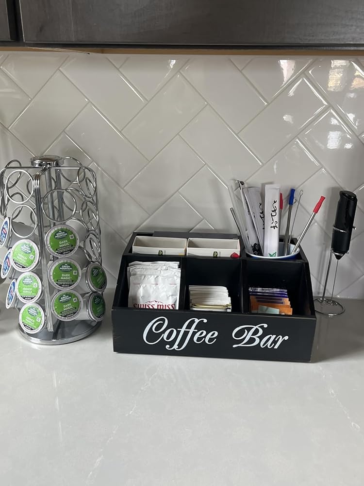 - aroma. Saves Counter Space: The vertical, double-layer design consolidates your coffee supplies into one compact, organized unit, reducing clutter.