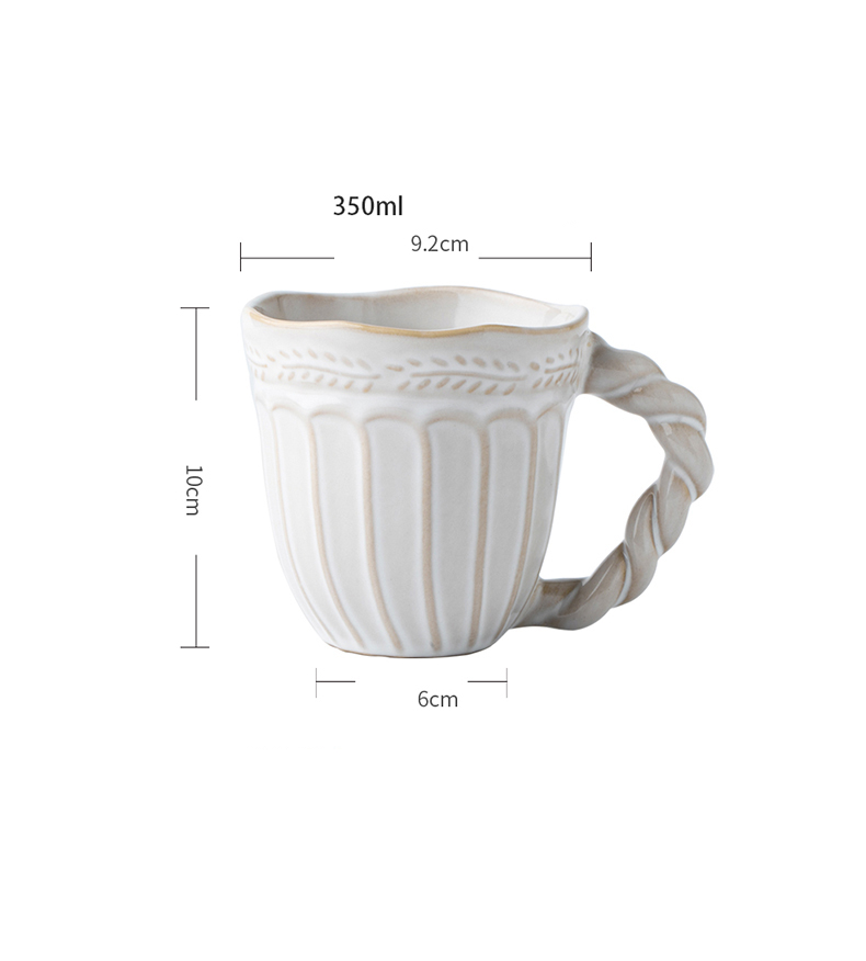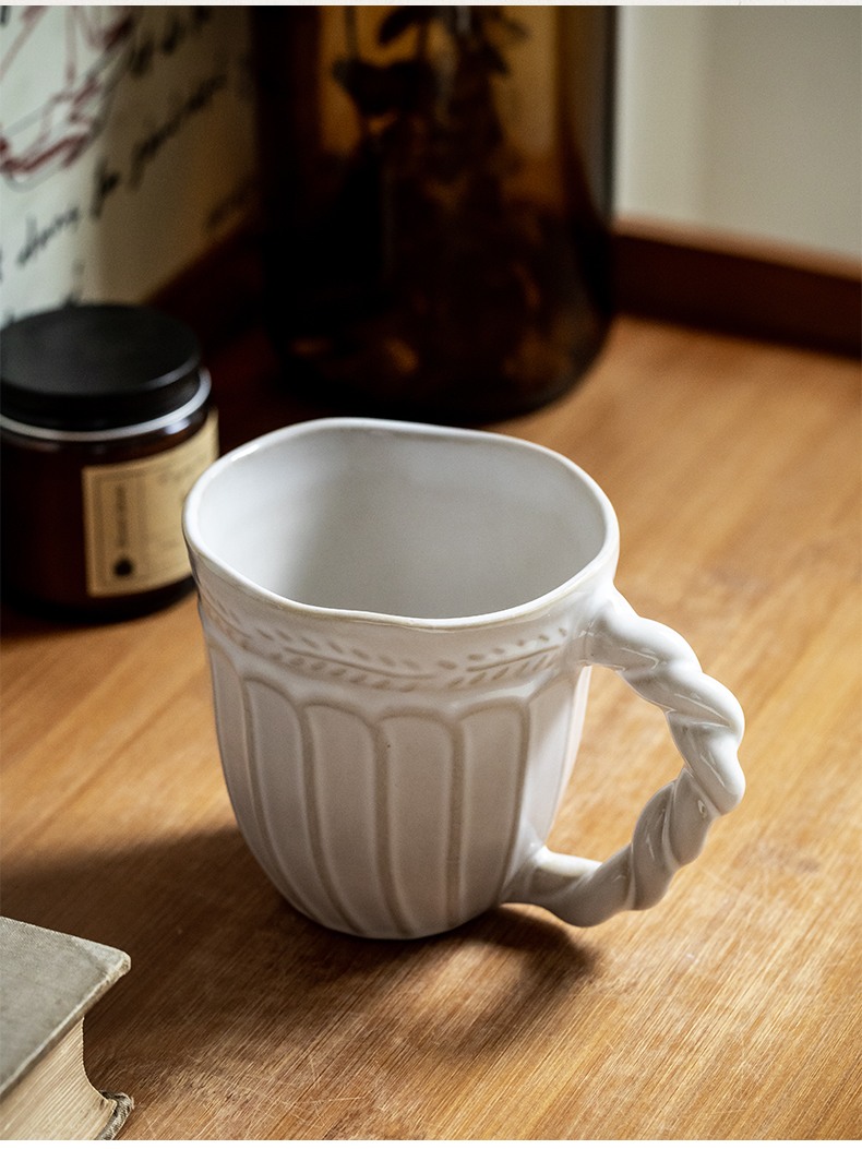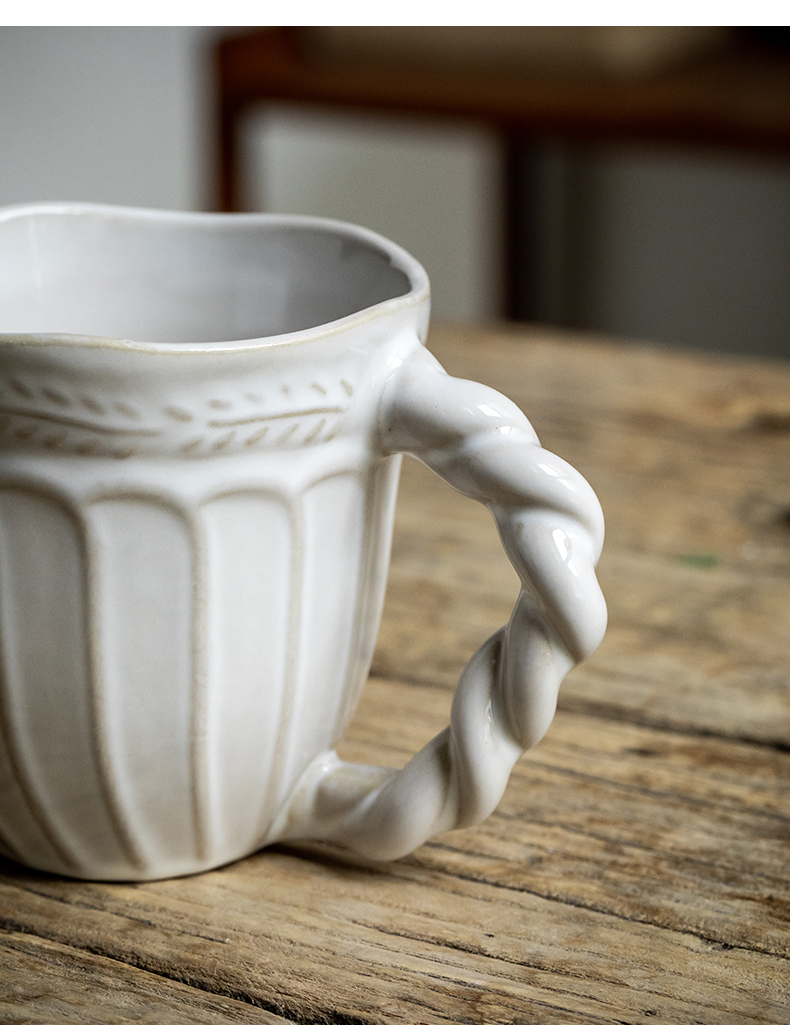 Embossed Coffee Mug – French Ceramic with Twist Handle