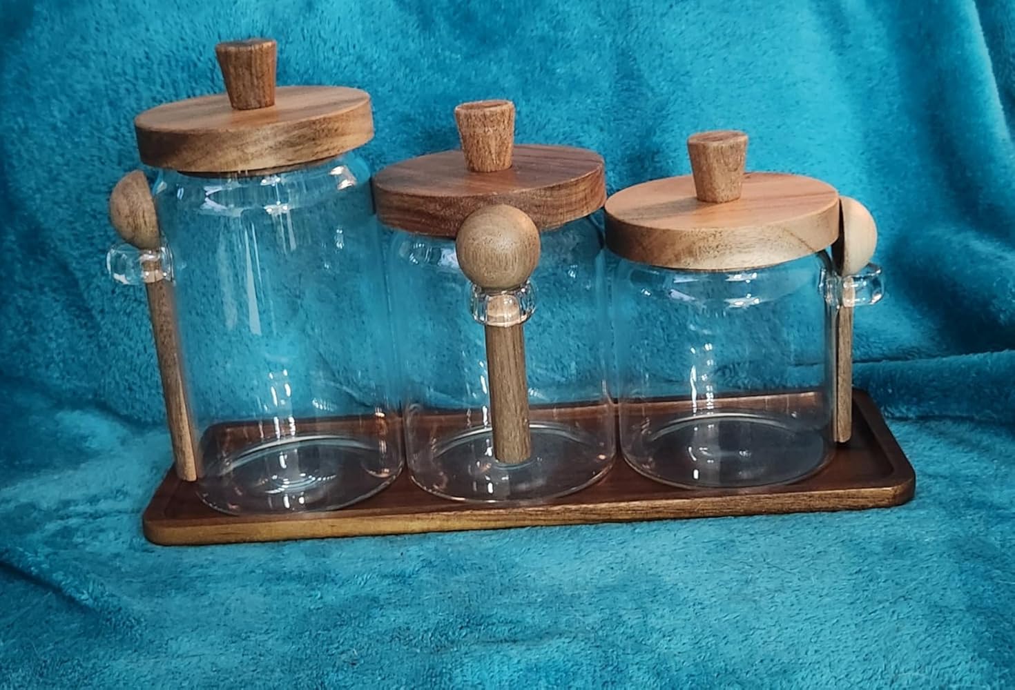 COMPLETE 3-JAR SET WITH MEASURING SPOONS: Get everything you need for instant organization! Three different sizes with matching spoons make portion control and serving beautifully convenient.