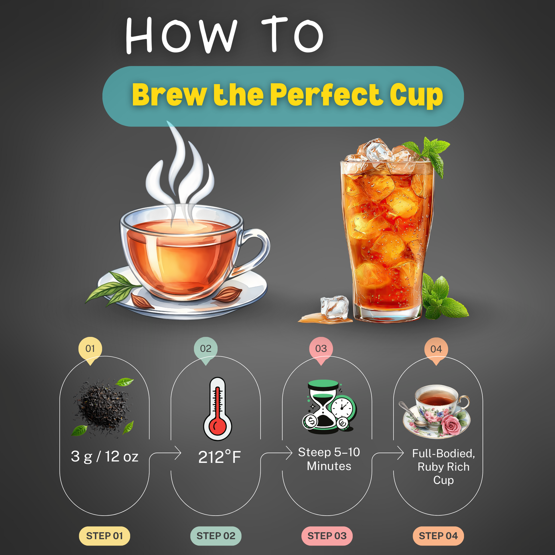 - Cold: Steep strong, chill, and serve over ice with a slice of orange or a sprig of mint.